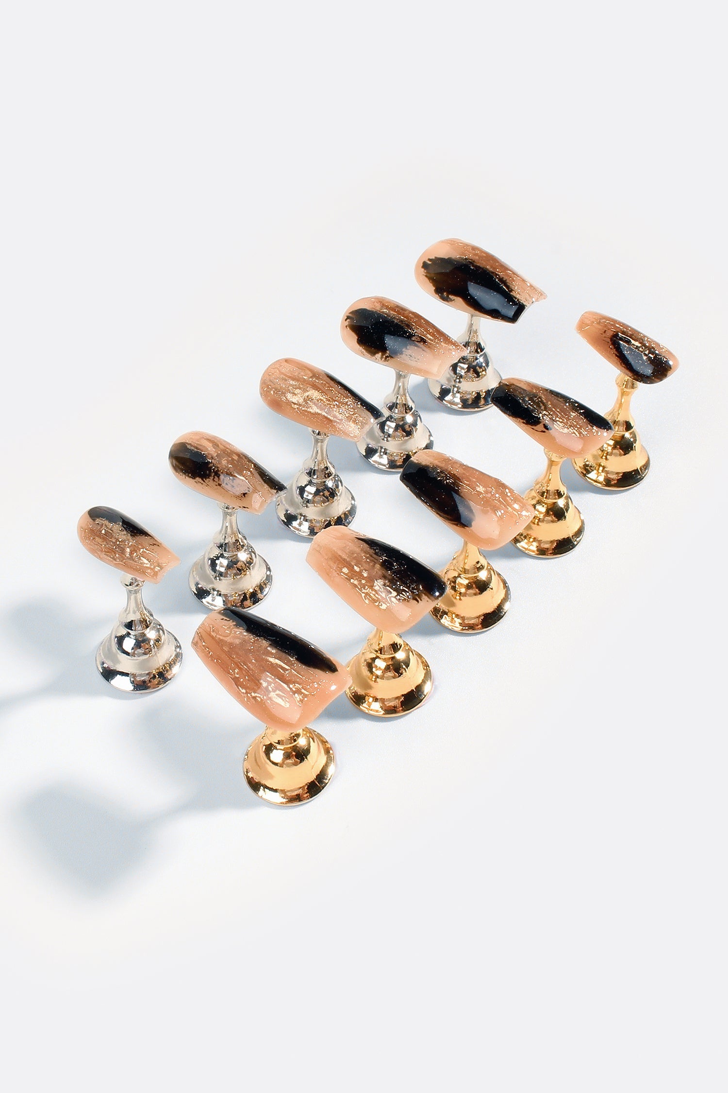 Moving beyond the traditional constraints of 'XS, S, M, and L' sizes, our approach prioritizes individual fit and precision. With our specialized collection, you receive 20 nails across 10 distinct sizes. From dainty fingertips to a bolder width, every hand finds its ideal match.